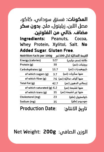 شوفانكم، زبدة فستق عالية البروتين بالكاكاو 200غ