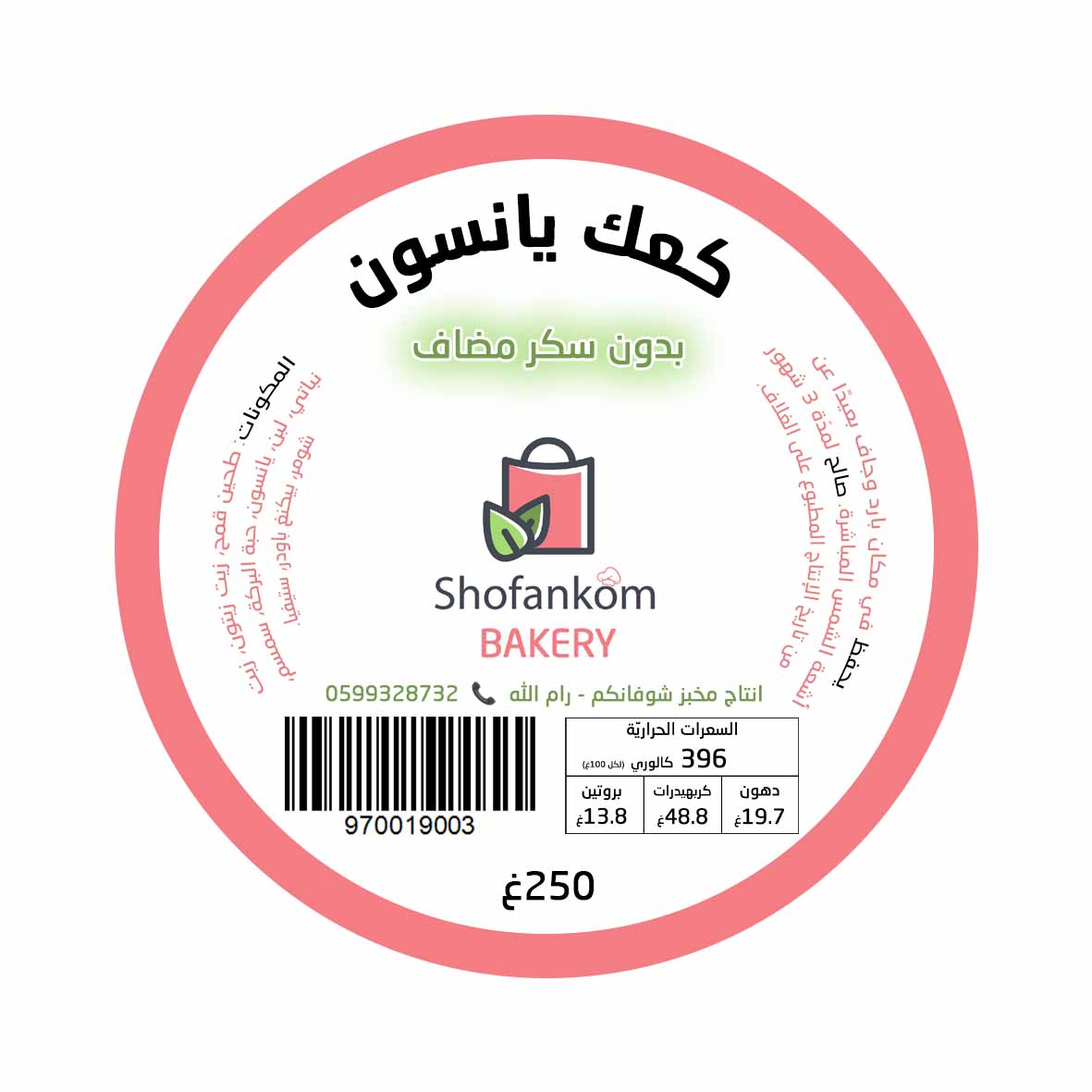 شوفانكم، كعك اليانسون بدون سكر 250غ