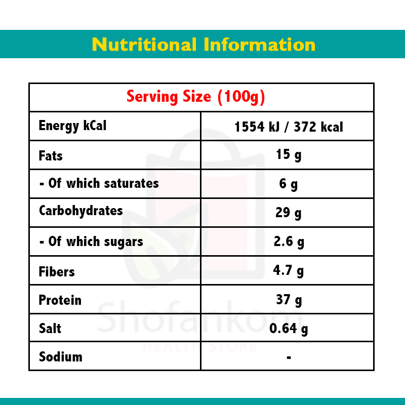 يحتوي على حليب (يحتوي على اللاكتوز)، وفول الصويا، وحبوب تحتوي على الغلوتين. قد يحتوي على حبوب أخرى تحتوي على الغلوتين. الحبوب والمكسرات و