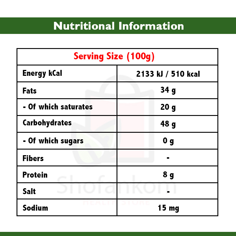 كاكاو، حليب بودرة، فستق حلبي، زبدة كاكاو، محليات طبيعية