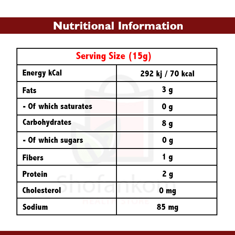 شوفان – دقيق قمح – زيت عباد شمس – سن ردة ناعم – جلوتين قمح – مواد رافعة (بيكربونات أمونيوم E503ii – بيكربونات صوديوم E500ii) – مستحلبات (صويا