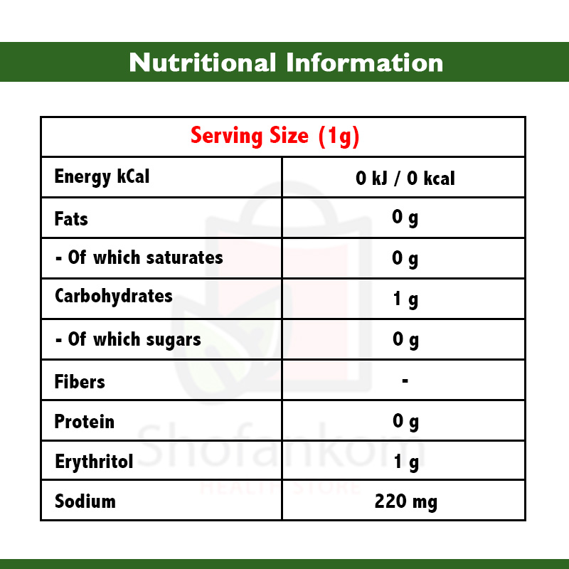 إريثريتول عضوي، مستخلص ستيفيا عضوي، نكهة طبيعية عضوية.